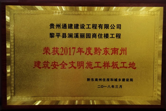 位于黎平县德凤街道西门冲的阑溪丽圆商住楼,是安博电子承建的重点工程项目“阑溪丽圆公租房建筑群”的缩影,也是我公司精心打造的形象样板工程的一个亮点,经公司全体员工的共同努力,“阑溪丽圆商住楼工程”被评为黔东南州“建筑安全文明施工样板工地”,填补了公司在州一级示范工程评比中中奖的空白。